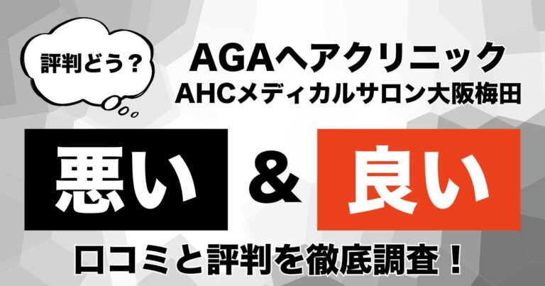 AGAヘアクリニック「AHCメディカルサロン大阪梅田」の悪い口コミと良い口コミを調査し、その評判をまとめてみました。