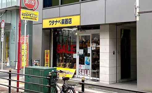 (3)1Fのワタナベ楽器店が目印です。楽器店の横の入口からすぐのエレベーターで5階までお越しください。