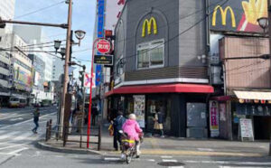「マクドナルド」の方面に向かって横断歩道をお渡りください。そのまま真っ直ぐ進みます。